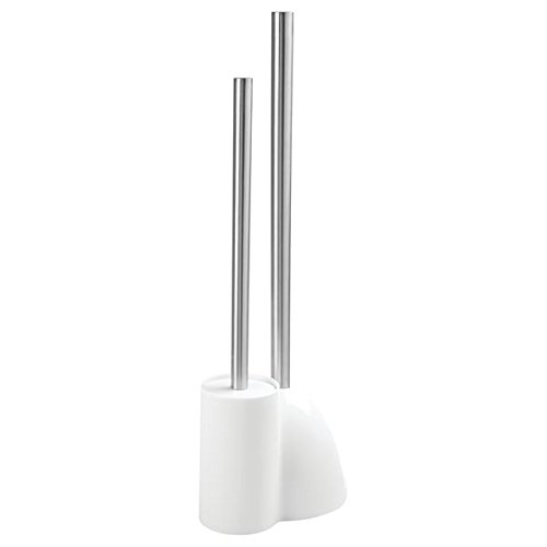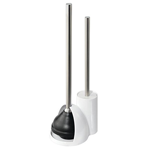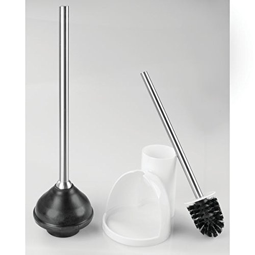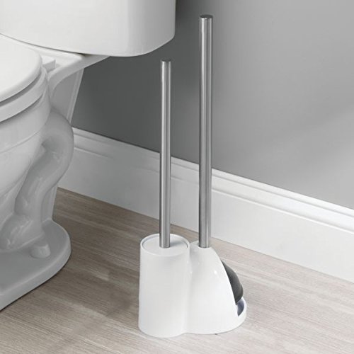 mDesign Bathroom Toilet Brush and Plunger Compact Combo Set - White/Brushed