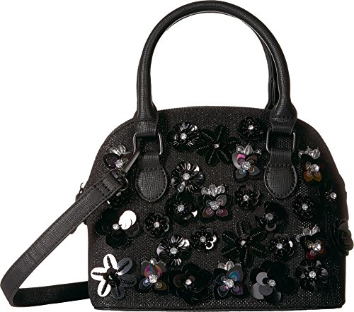 Top handle satchel with 3D flower and padlock detail