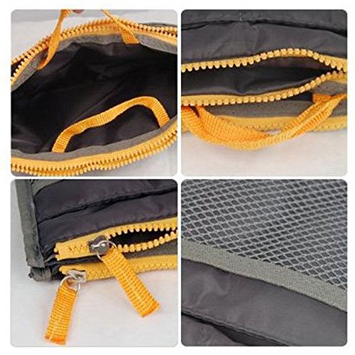 -. Feature : Material:nylon and mesh fabric / Size: Approx 28.5cmx17cmx8.5cm/11.2inchx6.7inchx3.3inch / Light weight and washable / Multiple pockets to subpackage your stuff tidily / The middle is open, without zipper closure