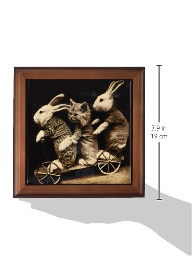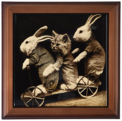 3dRose ft_153722_1 Adorable Old Photo of Bunnies and a Pussy Cat Framed Tile, 8 by 8-Inch