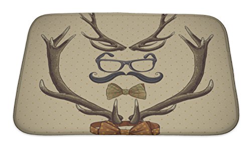 Gear New No Slip Microfiber Memory Foam Hipster Vintage with Deer Antlers Bath Rug Mat, 24" X 17"