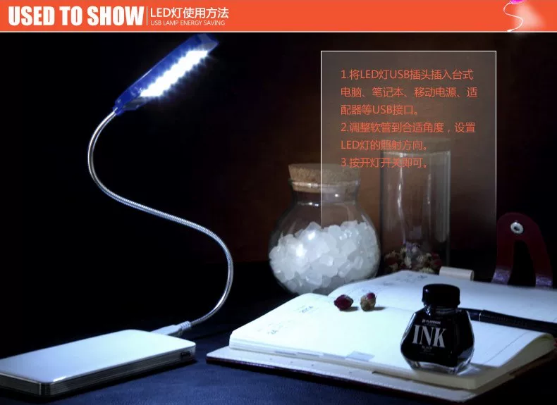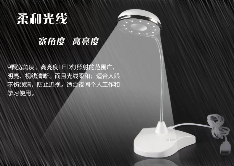 - bright white LED can ensure that the dark has clear vision, surf the Internet or play games whenyou turn off the light, in the evening, plug in a USB lamp, protect your eyes is not easy to fatigue,but also save electricity, and can not affect the rest of others, let you enjoy the fun of the game and the network.