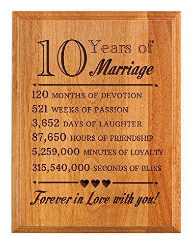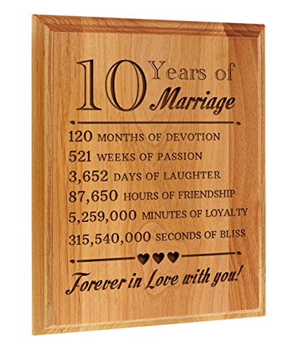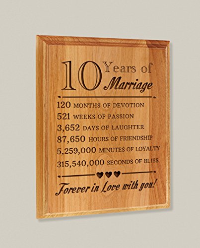 Engraved wood plaques make great 10th wedding anniversary gifts for her, wedding anniversary gifts for him, or wedding anniversary gifts for the couple. Plaques are 10th anniversary gifts that last a lifetime.