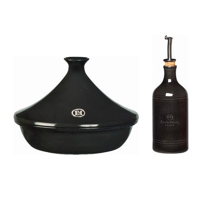 -. Brand : Emile Henry -. Color : Red -. EAN : 3289317997327 -. Feature : Made from Flame Ceramic. Can be used directly on the heat or in the oven. Make delicious tagines, stews and any recipe which requires simmering. / It can be used on all direct heat sources: gas, electric or halogen (with an induction disk for induction hobs) and in the oven. / Our Flame ceramic has been designed specifically for slow simmering, which brings out the flavors in the recipe / The lid has a unique shape, which allows the steam to circulate and helps keep the ingredients tender and moist. -. Label : Emile Henry -. Manufacturer : Emile Henry -. MPN : 799732 -. NumberOfItems : 1 -. PackageQuantity : 1 -. PartNumber : 799732 -. ProductGroup : Kitchen -. ProductTypeName : KITCHEN -. Publisher : Emile Henry -. Studio : Emile Henry -. Title : 2 Piece Tagine and Oil Cruet Color: Charcoal