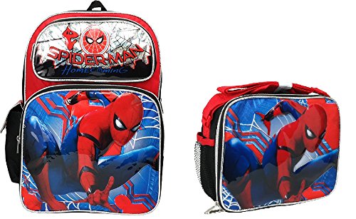 "HOME COMING "Marvel Spiderman Boys 16" Canvas Black School Backpack w/Lunch Bag