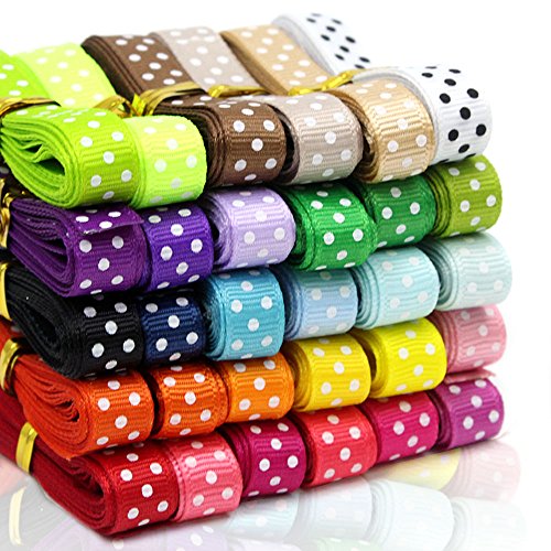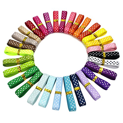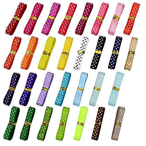 JUSLIN 30-Color 60 Yard (30x2 Yard) 3/8" Dot Grosgrain Ribbons for DIY Bowknot, Hair Ornaments, Gift Packaging