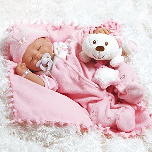 - Feature : She has beautiful hand painted details, hand applied eyelashes and hand painted hair to achieve the real newborn look / Artfully crafted in baby soft GentleTouch vinyl to look and feel just like a real baby / 16 inch baby doll that looks like a real baby, sculpted by artist Angela Anderson / She even comes with a weighted soft cloth body (with beads and pellets) for the most lifelike feel when you cuddle her close