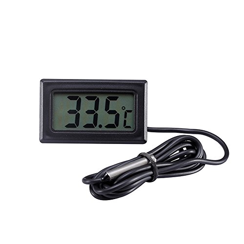 -. Feature : ペット管理、冷蔵庫・冷凍庫、温室の管理、その他温度管理に / 重さ:22g サイズ:幅2.8cm 長さ4.8cm 高さ1.5cm センサーコード長:1m / 設置環境:-5℃~+50℃ 電源:ボタン電池LR44(テスト用2個付属) 電圧1.5V / 素材:プラスチック 内容物:温度計、テスト用電池2個、シール付きマグネット