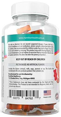 Hamilton Healthcare's Children´s gummy mega multi-vitamins provide a complete multivitamin formula that has been formulated to support the specific health needs of children. A fusion of essential vitamins, minerals and natural berry flavors, these great-tasting gummies provide a convenient alternative to hard-to-swallow pills. Multivitamins have been recommended by the Harvard School of Public Health and the American Medical Association to help get us the nutrients our diets don't always provide.