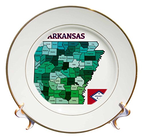 3dRose cp_172007_1 Map And Flag Of The State Of Arkansas with All Counties Colored Porcelain Plate, 8"