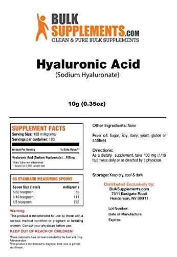 Hyaluronic acid (sodium hyaluronate) is sometimes referred to as nature's moisturizer due to its use as a bodily lubricant and the fact that it is one of the most naturally occurring hydrophilic molecules. This can be particularly important for bone health, as the natural lubrication of hyaluronic acid can prevent joint friction and associated pain. Please note: hyaluronic acid is a heat-sensitive powder; it is best stored in cool and dry areas.Feature