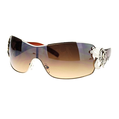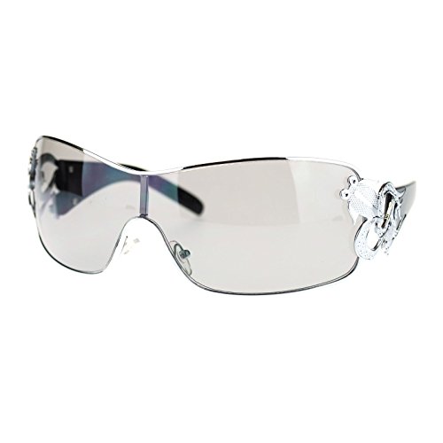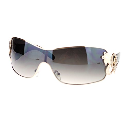 Womens Coy Metal Jewel Designer Fashion Shield Warp Sunglasses Black Mirror