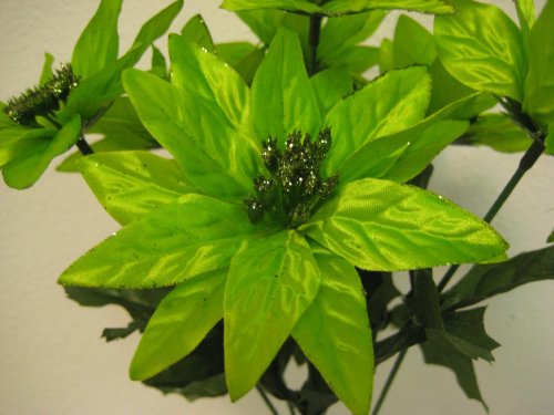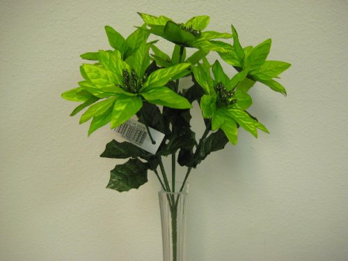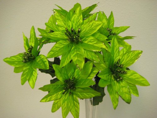 6 Bushes LIME Christmas Glitters Poinsettia 7 Artificial Silk Flowers 12" Bouquet 2209LIM