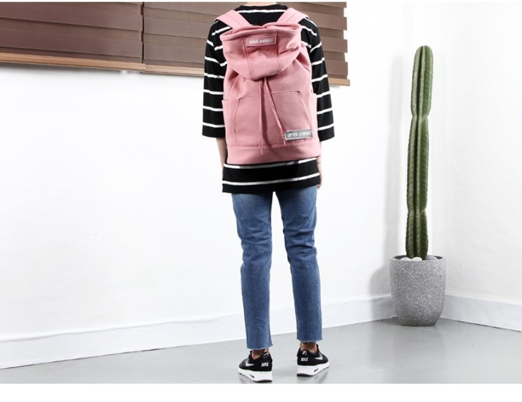 Pink Patch Hooded Backpack 4COLOR Bag Personalized Travel Campus