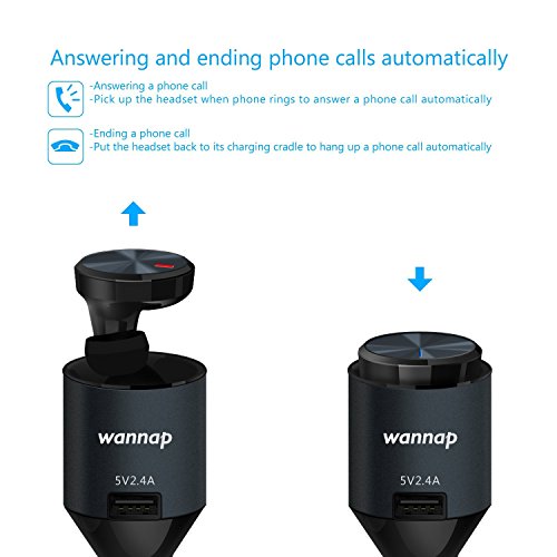 Wannap intelligent Wireless Bluetooth V4.1 Headphones and 2.4A USB Car quick Charger 3In1 Car Kit, Magnetic Positioning, Smart Re-connect, Automatically Answer call/Hang up Headset/Earphone/Earpiece