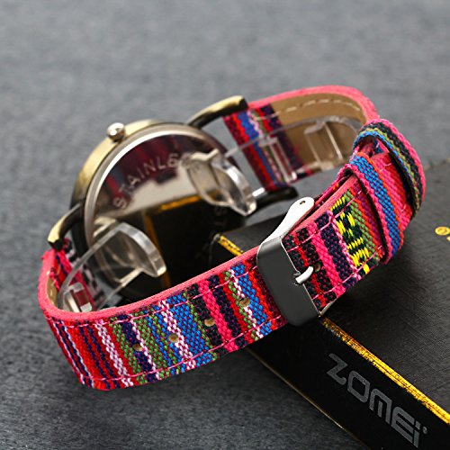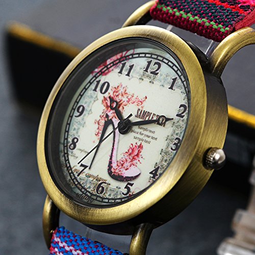 -. Feature : 100% Brand new watch, come with gift bag P.R.Inted Lancardo, We can engrave words on it for just 3.99, please contact me first. / Teenager girls wrist watch, Vintage antique brass metal case, high heel dial / Length:8.7"(22cm), Case Dim.:1.3"(3.4cm), Thickness:0.3"(0.8cm), Band Width:0.6"(1.5cm) / Big easy read roman numerals markers, colorful mesh woven canvas surface leather strap band / Living water resistant design (Not suitable for swimming, diving, shower, etc.)