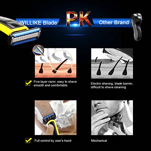Razors for Men, WILLIKE Phoebus Men’s Razor with Razor Handle and Razor Blade Refill 5-layer Laser Spot Welding Blade for Shaving and Styling Facial Hair...