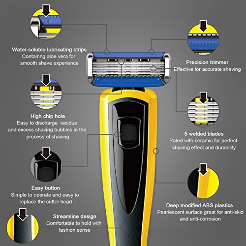 - NO SENSE OF SHAVE: Razors for men with 5 Anti-Friction blades,A shave you barely feel,great for hard-to-reach areas and styling facial hair,with silicone case for home or travel.