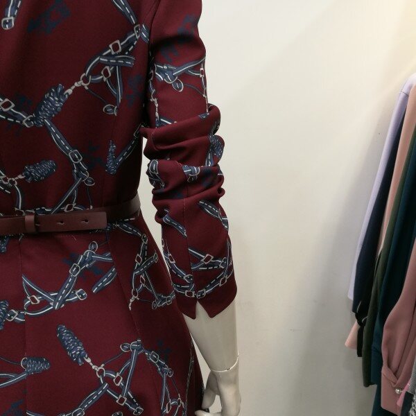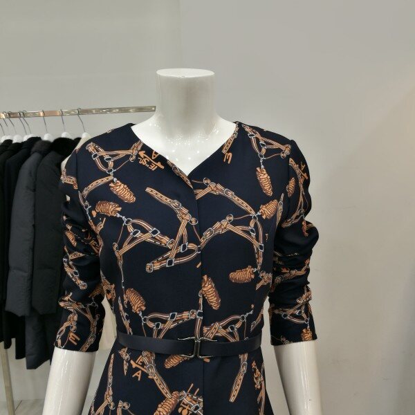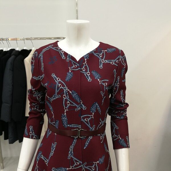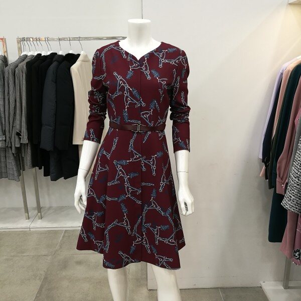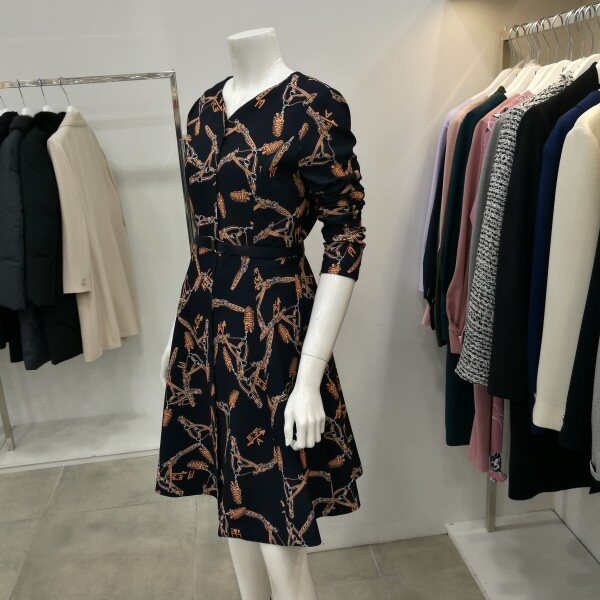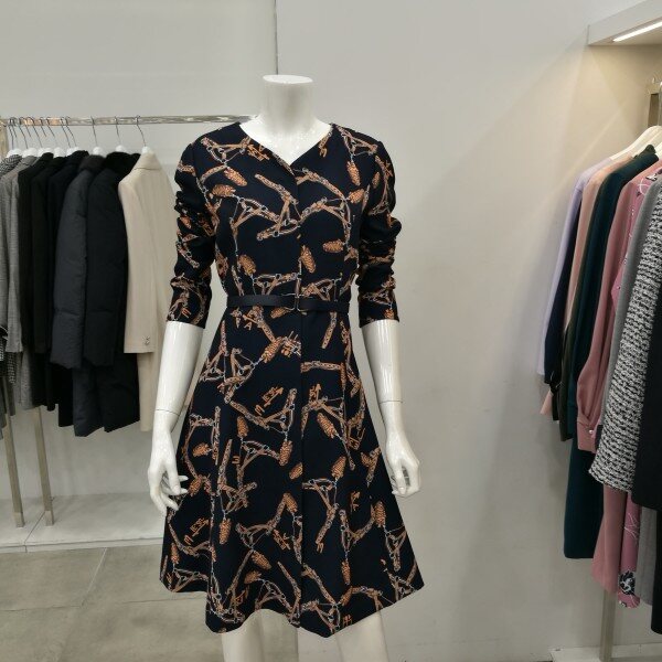 고급스럽고 세련된 스타일로 V넥이면서 A라인이라 어려보이며 무늬 또한 아주 지적인 디자인이다.입으면 더욱더 예쁨!!!