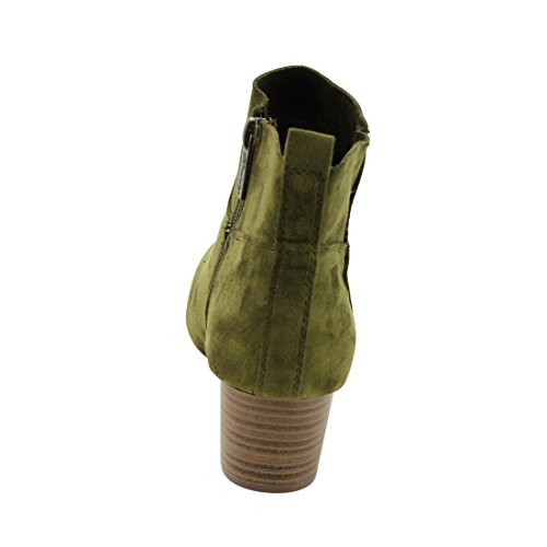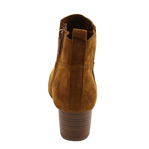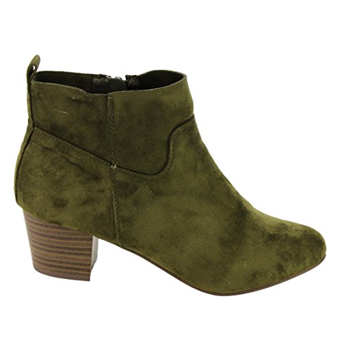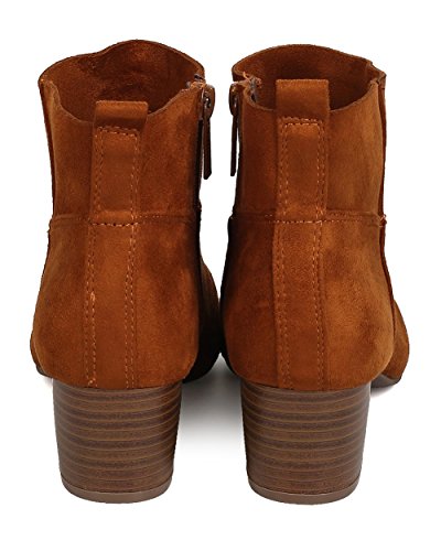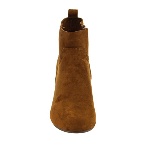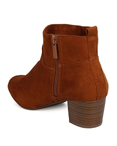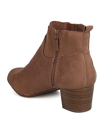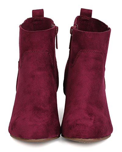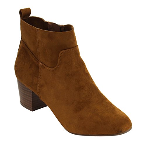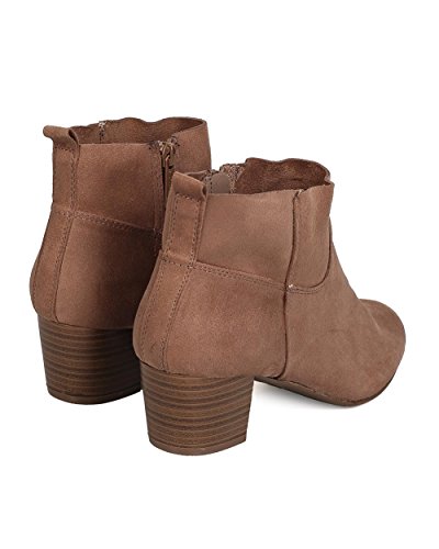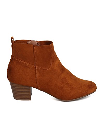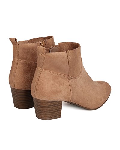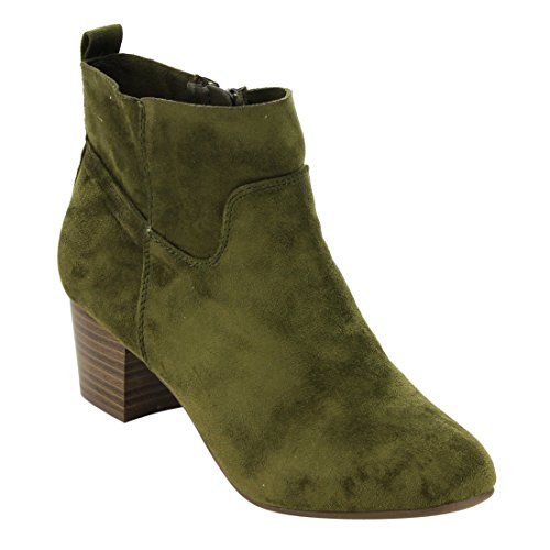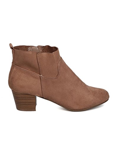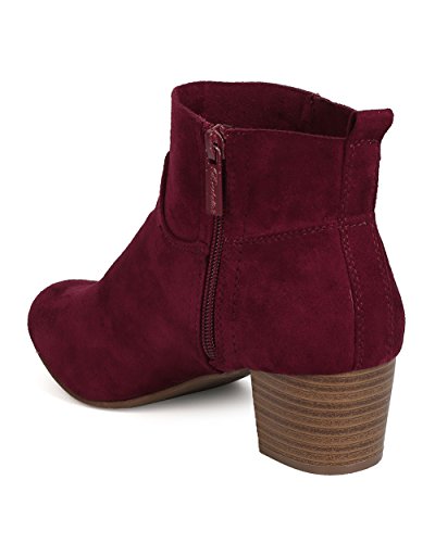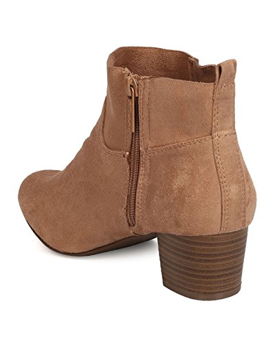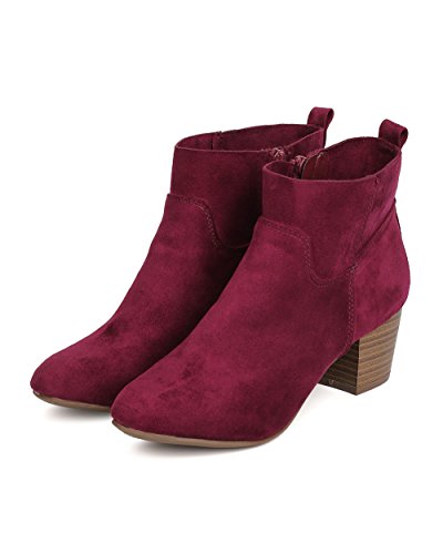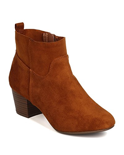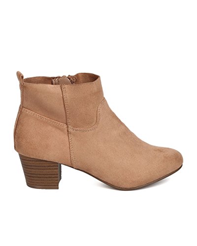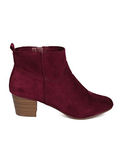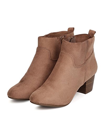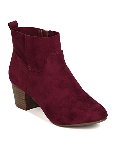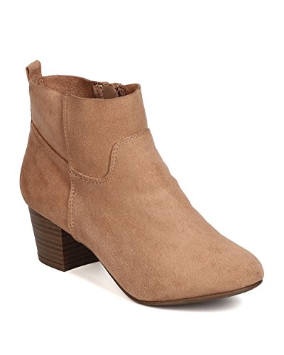 Breckelles GK54 Women Faux Suede Round Toe Chunky Heel Ankle Bootie