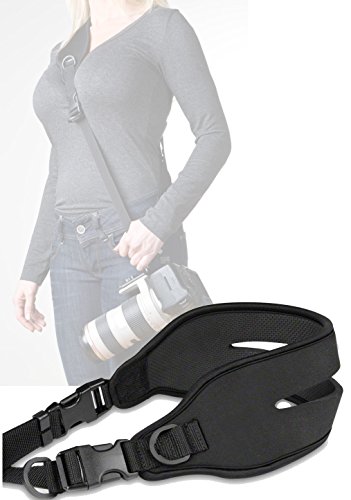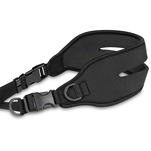 Die Neopren-Doppelauflage burgt fur uberragenden Tragekomfort. Die Zweiteilung des Gurts sorgt neben der optimalen Gewichtsverteilung, zusatzlich und effektiv fur sicheren Halt. Das sind Welten Unterschiede zum normalen Kameragurt, mit dem ein Tragen, von schweren Objektiven mit Stativschelle, nicht in Frage kommt.