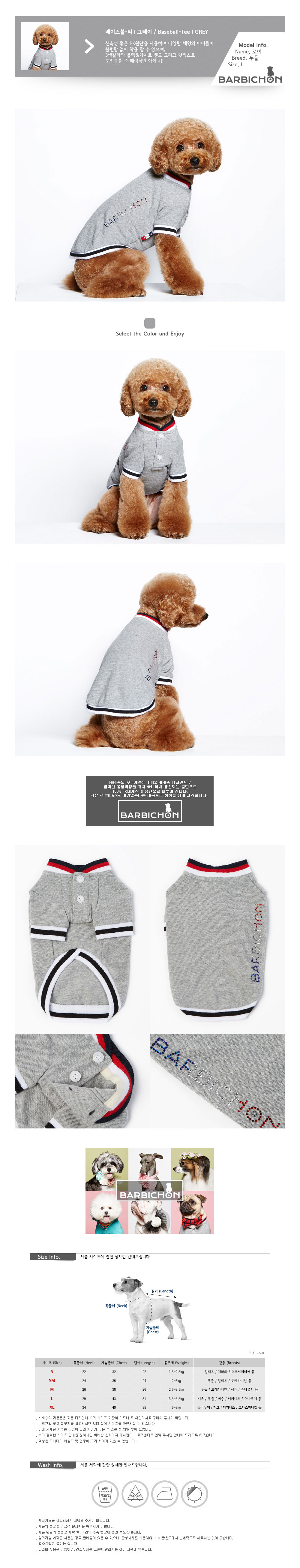 반려견이 편안해하는 펫웨어 바비숑의 베이스볼 티 그레이컬러 입니다.