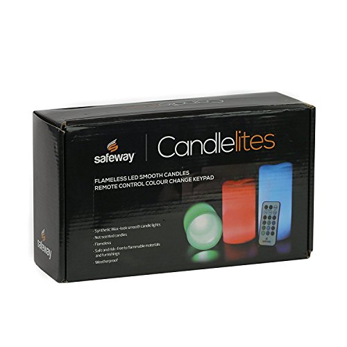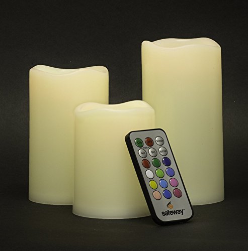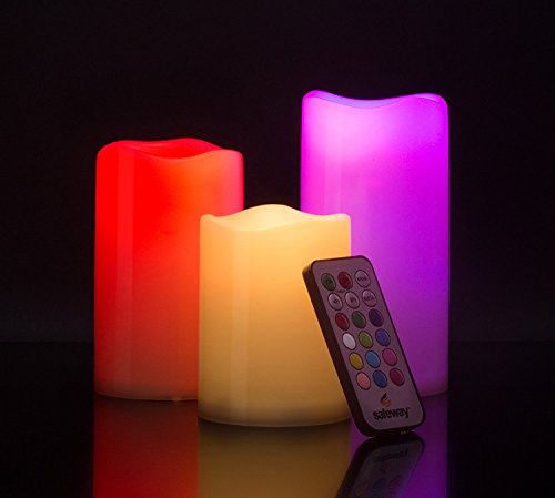 Safeway Candlelites - Set of 3 round LED Candle lights 4" 5" 6", Flameless, Color Changing With Flickering Flame, Smooth Wax-look High Performance With Remote Control Timer