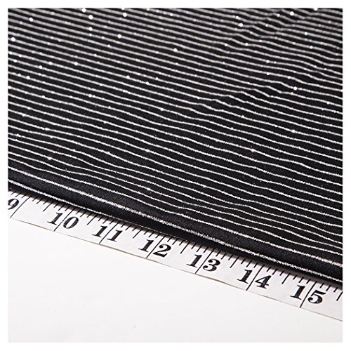 - 58 Inch x 5-Yard Lot of Black with Silver Pinstripe Poly/Spandex Fabric. The width listed is the "usable width" there is a "salvage edge" which is overhang from production of the fabric.