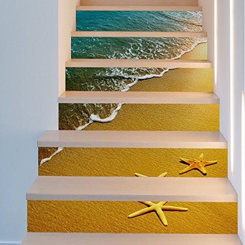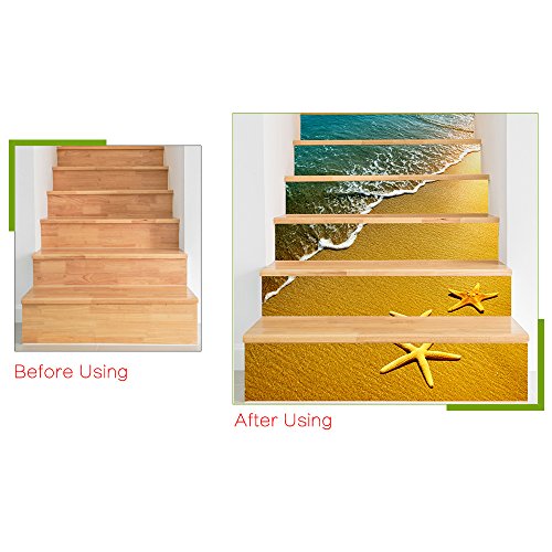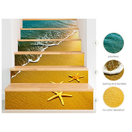 yazi Backsplash Tile Stair Stickers Seaside Beach DIY Refurbished Stair Treads Decals Removable Waterproof Stairs Mural 7''W x 39''L (Set of 6)