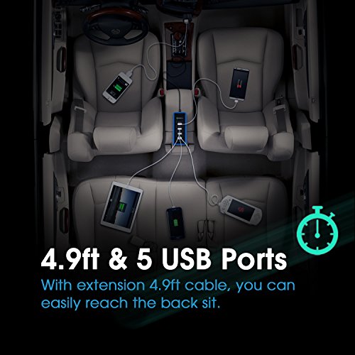 - It provides convenience to both front and rear seat passengers to charge their devices with 4.9 feet extension cable & 5 usb ports simultaneously.