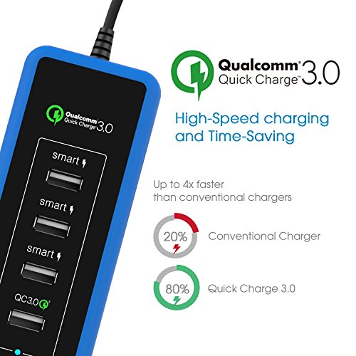 - 3 ports of exclusive smart identification technology recognize your device and distribute the maximum charging current possible; one of Qualcomm Quick Charge 3.0 provides outstanding charging speed.
