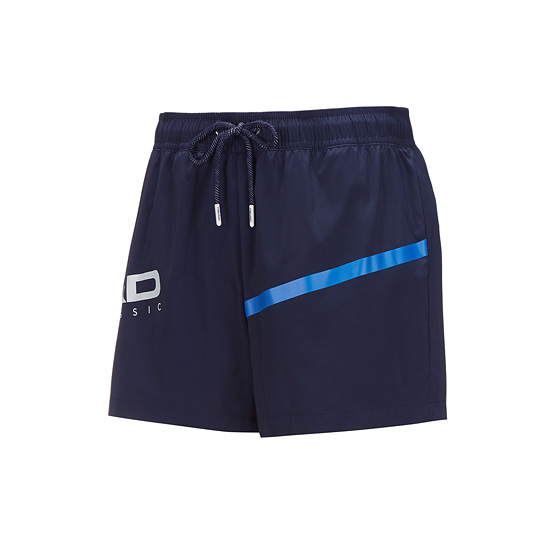 - 헤드 로고와 배색 라인 프린팅으로 스포티한 네오 클래식 여성 비치 팬츠.