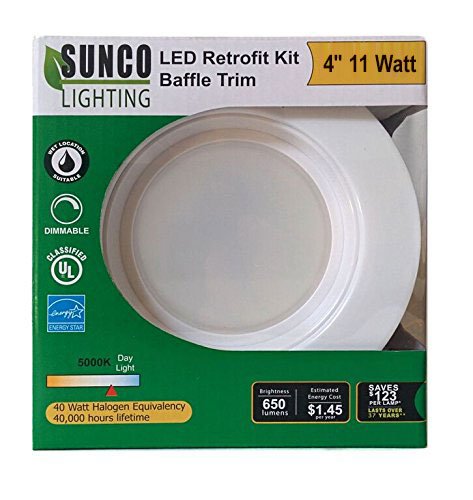 - ✔ CONSERVE ENERGY: Using SUNCO’S LED Recessed Lighting Retrofit can reduce energy use by as much as 90%. Improving energy efficiency can reduce emissions that contribute to global warming, mercury contamination in lakes, acid rain, and nuclear waste. Super BRIGHT light, SAVES energy, and LOWERS electric costs: 11W (40W Halogen Equivalency), LASTS over 37 years, SAVES $123 per lamp.