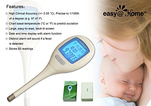 - Title : Easy@Home Digital Basal Thermometer with Basal Body Temperature Chart for Ovulation tracking - backlit LCD display, 1/100th of a degree precision, Alarm Clock Setup, Test Completion and Fever alarm