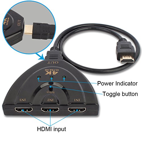Hdmi splitter-3 In 1 0ut HDMI Switch: This HDMI Switch is very easy to use, plug and play. You can hook up 3 devices to it (ps3/fire TV/Blu-players) and 1 way out (TV or Monitor)