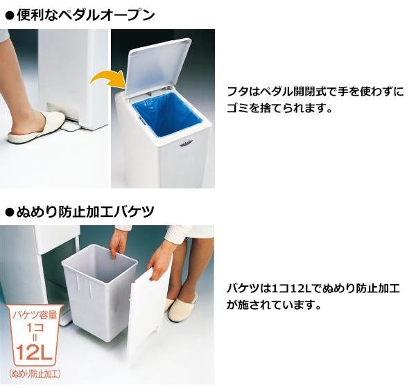 | 素材・材質 | 本体・上扉:鋼板(樹脂焼付塗装) 前面板・フタ:ポリスチレン バケツ:ポリプロピレン(ぬめり防止加工) |