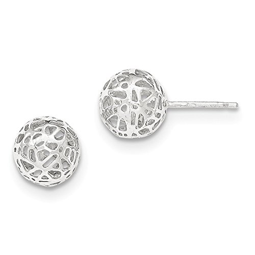 Solid 14k White Gold Large Fancy Ball Post Earrings (9.5mm x 9.5mm)
