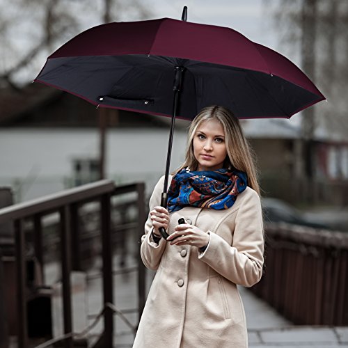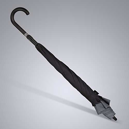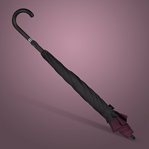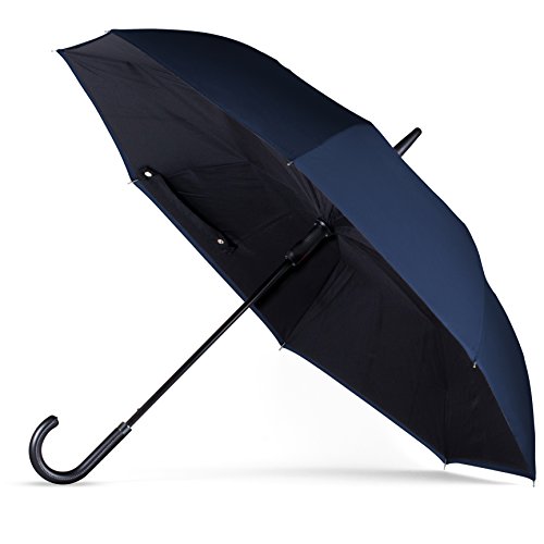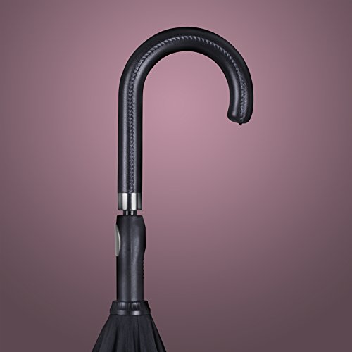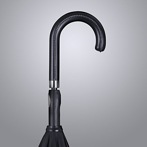 -. Brand : ANYWEATHER -. Department : unisex -. Feature : Stay Dry : With its innovative reverse engineering, our Inverted Umbrellas keep you dry inside and out. The mechanism traps water in the canopy eliminating wet clothes, wet floors, and wet car interiors. Dual canopy construction means better protection from the wind, rain and UV rays. / Auto Open : Convenient push button Auto-Open mechanism. / Superior Quality Construction : Fiberglass frame is flexible and when combined with its dual canopy can withstand winds of up to 50 /mph and won't collapse from strong wind gusts like traditional umbrellas tend to do. / Luxury : Faux black leather J handle with 160 point stitch construction is built to last. / Rubber Tip : umbrella shaft tip protects the lifetime of your umbrella and adds additional support when needed as well as protects frame spokes from damage. -. ProductGroup : Apparel -. ProductTypeName : LUGGAGE -. Title : ANYWEATHER Reversible Inverted Automatic Open Umbrella Leather J Handle