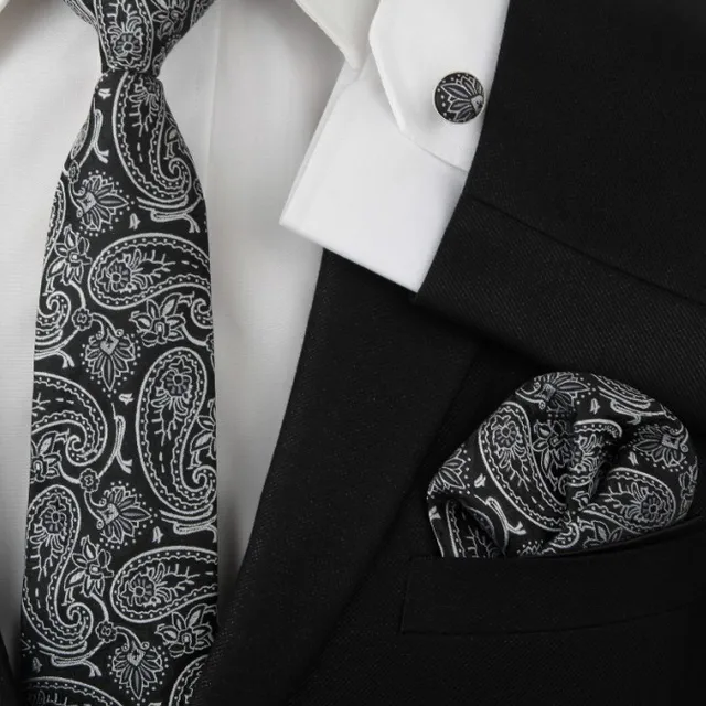 | [해외]목에 넥타이 세트 넥타이 남성 넥타이 커프스 비즈니스 실크 손수건 웨딩 cravate 12 색 |
