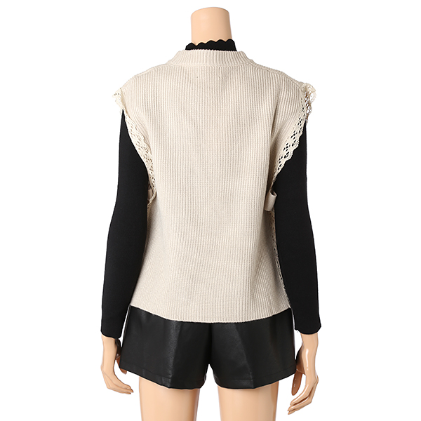 옆라인의 리본과 레이스 디테일이 예쁜 니트 베스트입니다.