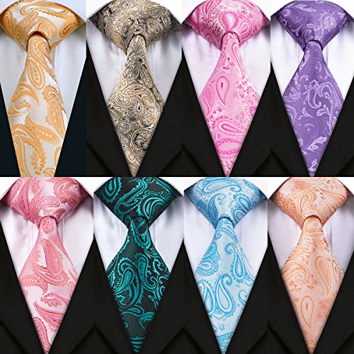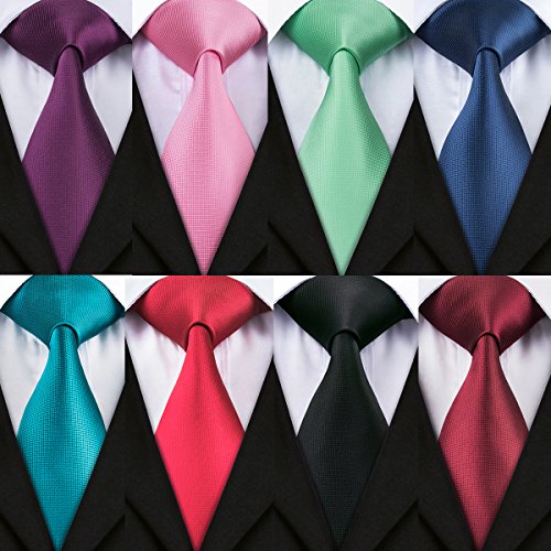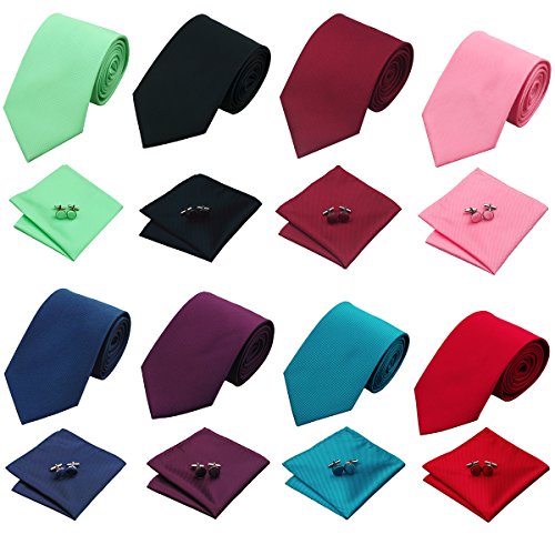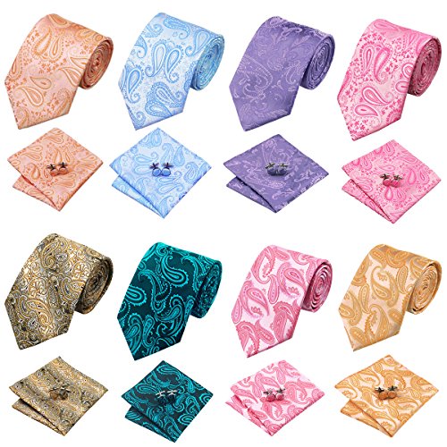 Why choose us? Material: Silk Craft: Jacquard Woven Size: 59.06"(150cm) in length and 3.35"(8.5cm) in Width Package included: 8 necktie 8 hanky 16 cufflinks