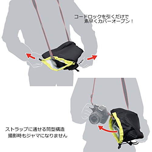 カバーをカメラに巻きつけるだけの簡単装着。ストラップに通しておける筒型構造。