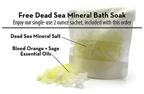 FREE GIFT – Includes a sachet of our popular Blood Orange Sage Dead Sea Mineral Salt Soak, 2 ounce single-use.
