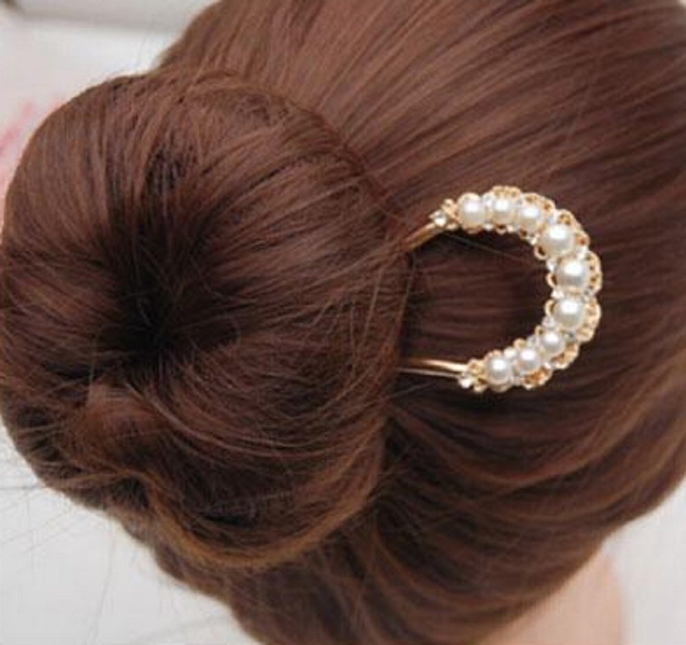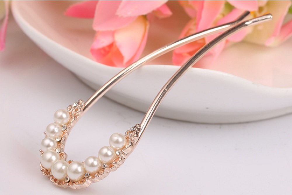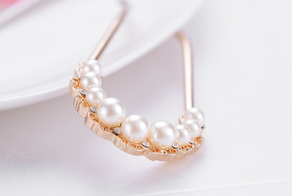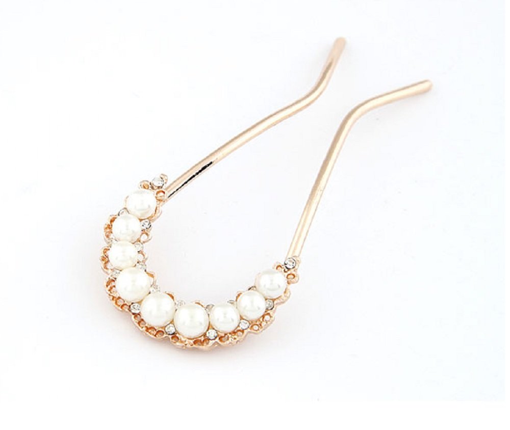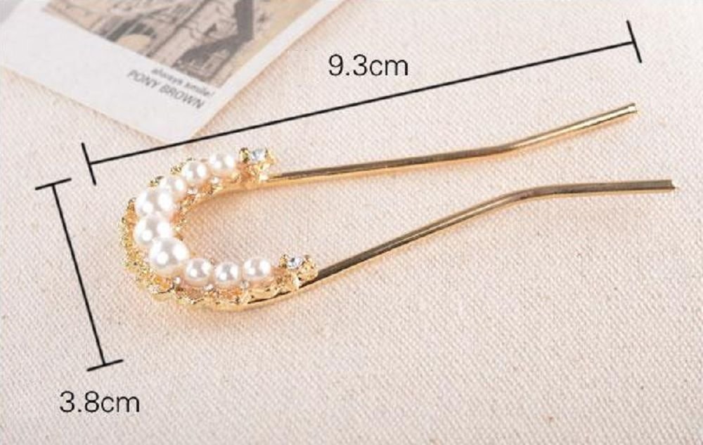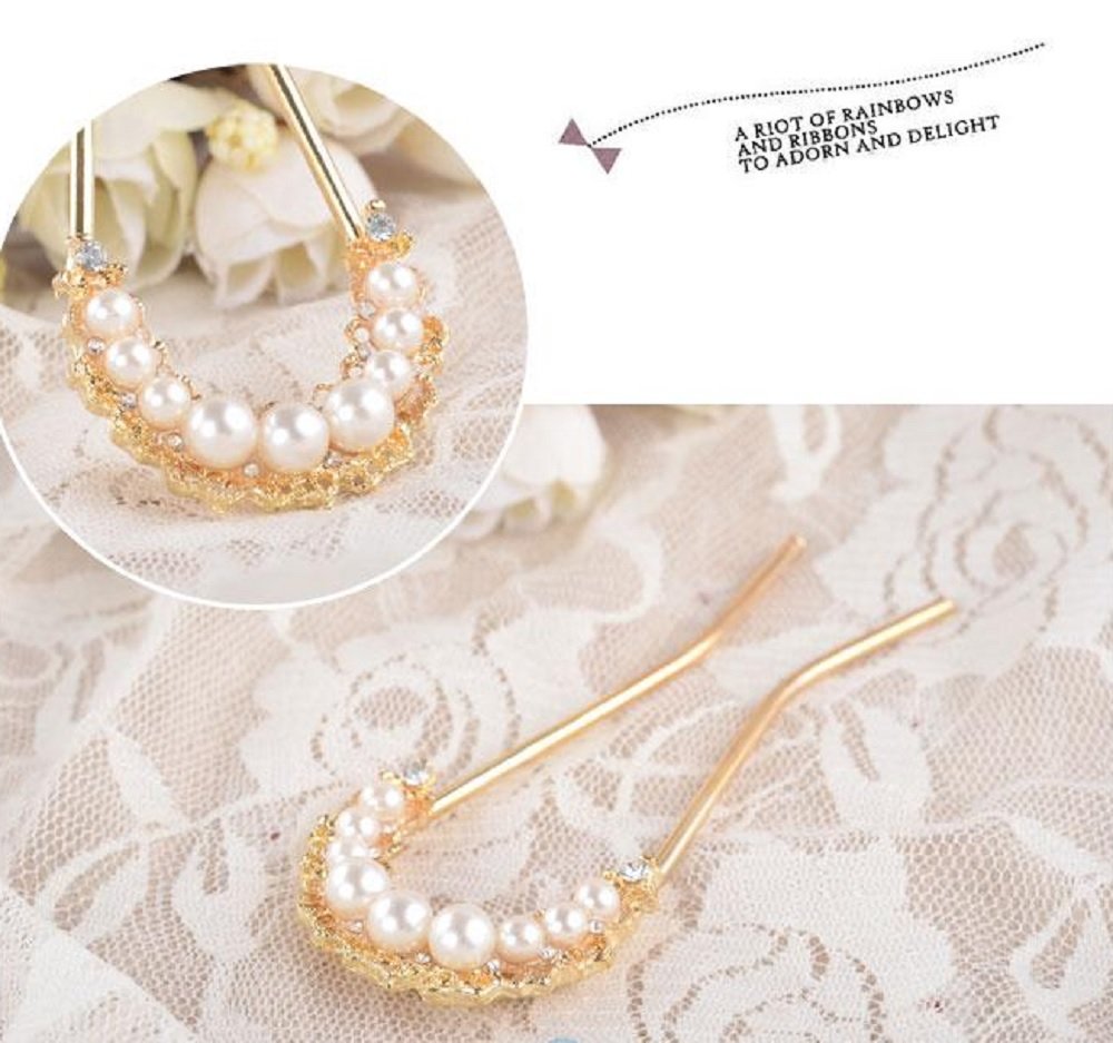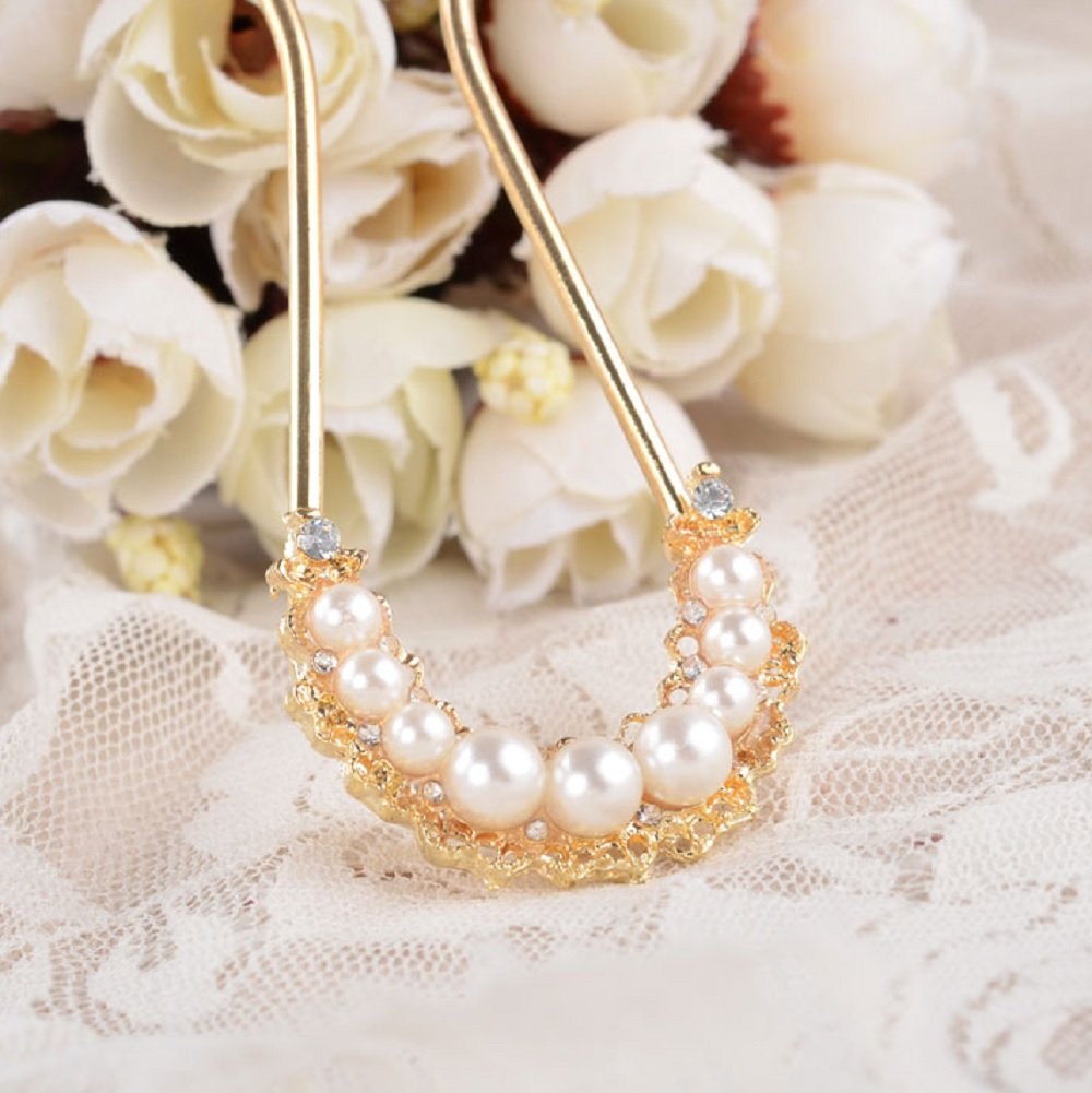 [Myaomyao] Miaomyao hairpin hairpin U-shaped hair ornament pearl Bijou Flower flower hair accessories (Gold)