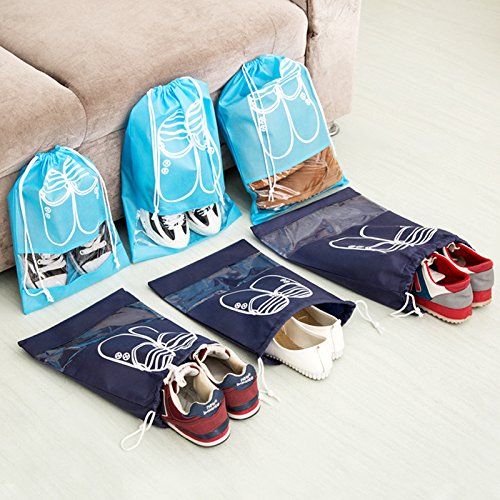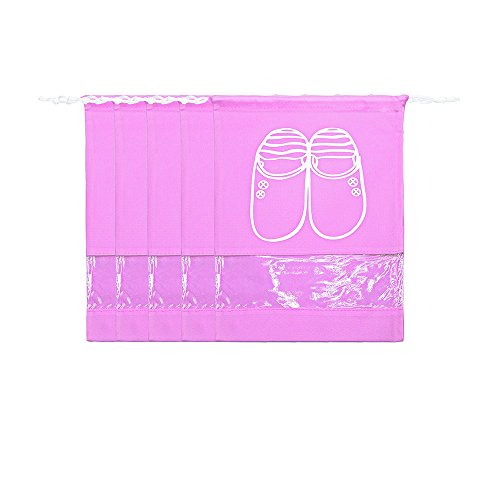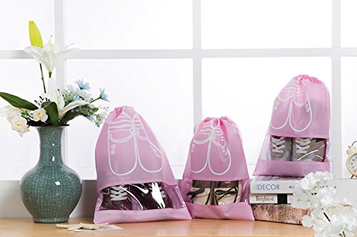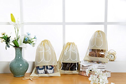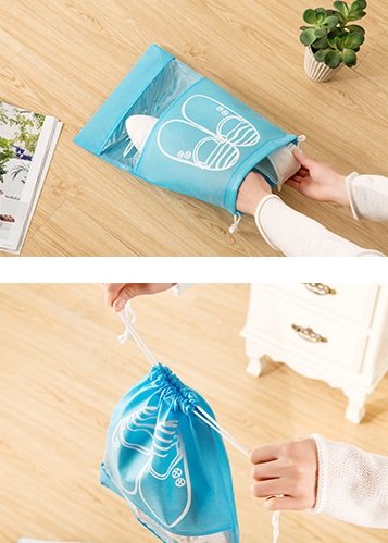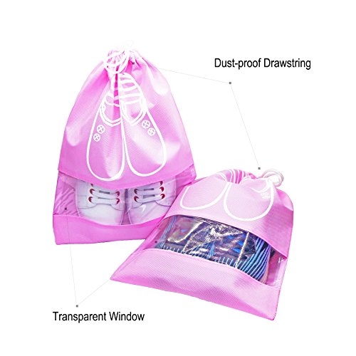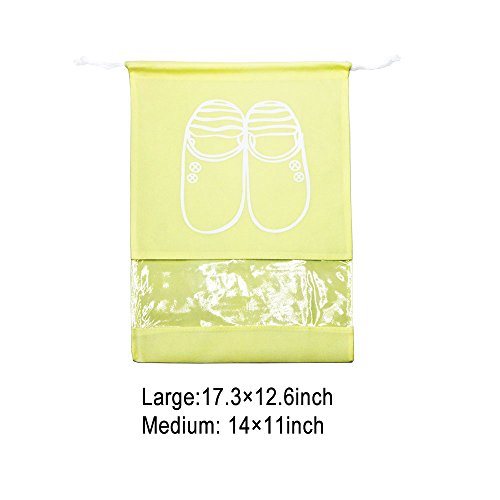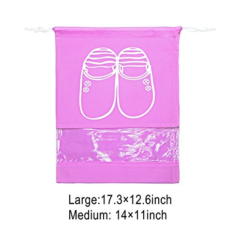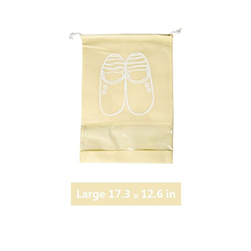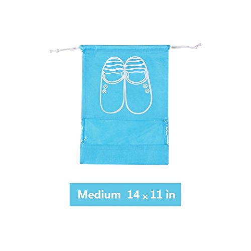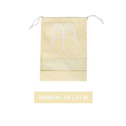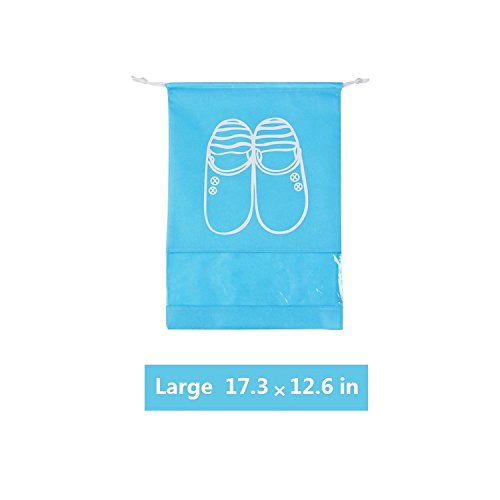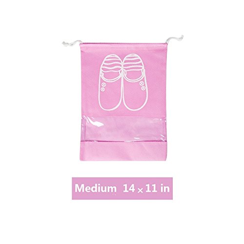 Product Description This shoe bags are the good helper for household, closet or off- season shoes organization. It is made with high quality non-woven fabric with drawstring closure - making it lightweight and durable. This shoe bag features a transparent window. Allow you to tell the content inside the bag quickly and easily Every season finished, you need to organize the off-season shoes into your closet or under-bed, If you put the shoes in closet or under bed directly, it is very dirty when you wear them in next season, the shoe bags will protect your shoes clean, When it comes to travel accessories, this shoe organizer are a perfect solution for luggage. Avoid flimsy plastic bags or a big hard case and save space when you pack with our pouches for shoes. Besides shoes, it can also be used for toys, accessories, clothes, toiletries, or just about anything! There are four colors and two sizes for different size shoes storage, the medium size is for Slippers, Sandals, leather shoes etc. The large size is suitable for high heel shoes, boots etc. Color: Pink, Sky Blue, Beige, Navy Blue Size: Large: 17.3 x 12.6 in Medium: 14 x 11 in. Eighty percent discount to buy any two packages 0