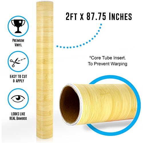Bamboo Wood Grain Contact Paper Roll | Self Adhesive Peel and Stick Vinyl Craft Vinyl Decor | Great for any Crafting Project | Various Sizes & Designs (2'x87.75" Bamboo)