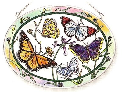 Amia 7656 Medium Oval Suncatcher with Butterfly Design, Hand-painted Glass, 7-Inch W by 5-1/2-Inch L