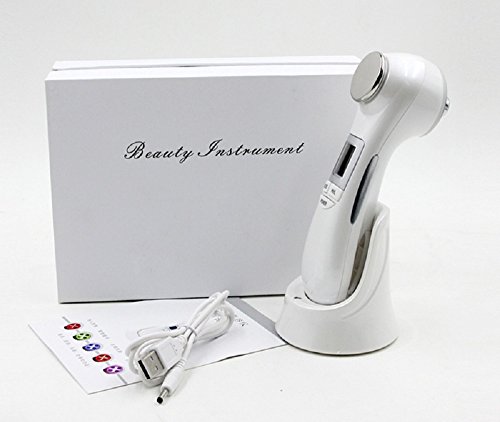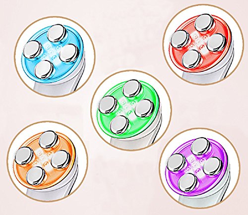 -. Feature : RF- stimulate collagen regeneration:Radio frequency (RF) is a high frequency. It is a thermal penetration therapy. Through RF conductive head, It transmits a kind of electromagnetic energy caused by high frequency ac change to the subcutaneous tissue.RF therapy can stimulate the dermis collagen regeneration, increase the thickness and the density of the dermis, lift and fill wrinkles,It is safe, reliable and no harm to the skin. / EMS - Electroporation :Directly act on the skin, instantly enhance skin tissue penetration.Once the holes forming, within several seconds to several minutes, it will keep the opening state according to the length of electroshock. Penetration into the deep skin collagen, hyaluronic acid, such as cosmetic ingredients EMS treatment is advanced technique used widely in beauty area.It must be applied with skin care products to work. / Ultrasonic feature- Ultrasonic massage:To act on the face can make the skin cell with vibration and produce micro massage effect, change the cell volume. Thus, improve local blood and lymph circulation, strengthen cell permeability, improve tissue metabolism and regeneration, softening tissue, stimulates the nervous system and cell function, make the skin shiny and elastic. / Acoustic vibration function - Massage, clean:It's main functions: promote blood circulation, accelerate metabolism, make the skin more tighten and bright. Everyone's face has at least more than 300,000 zero pore, introduced effectively cleansing pores deep oil, clean the oil residue in pore, can reply from deep clean skin. / LED lights function - Hyperplasia of collagen, removing bacteria :Skin care beauty device has steady light which is no harm to the skin.