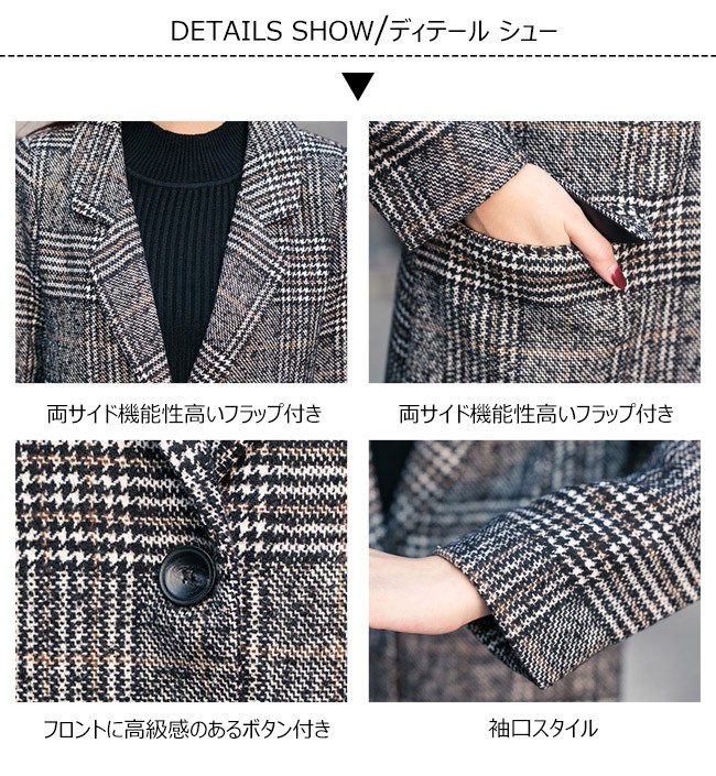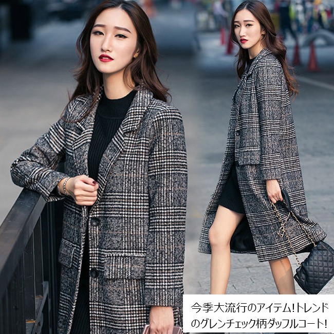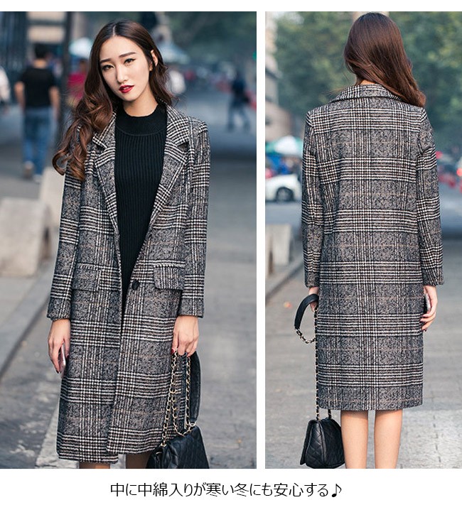 | 商品名 | グレンチェック ピーコート ダッフルコート 秋冬コート レディース グランチェック柄 中綿入り ラシャコート 中綿コート 秋冬アウター ミディアム丈 2017秋冬新作 |
