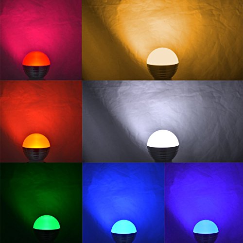 - Color Changing Light Bulbs: remote control light bulb 4 main colors (Red, Green,Blue and White). Total 16 different color tones provide colorful and bright illumination. You can set the right ambiance for any moment with a range of beautiful, And control the brightness by remote. Not too bright. Not too dark. Just right